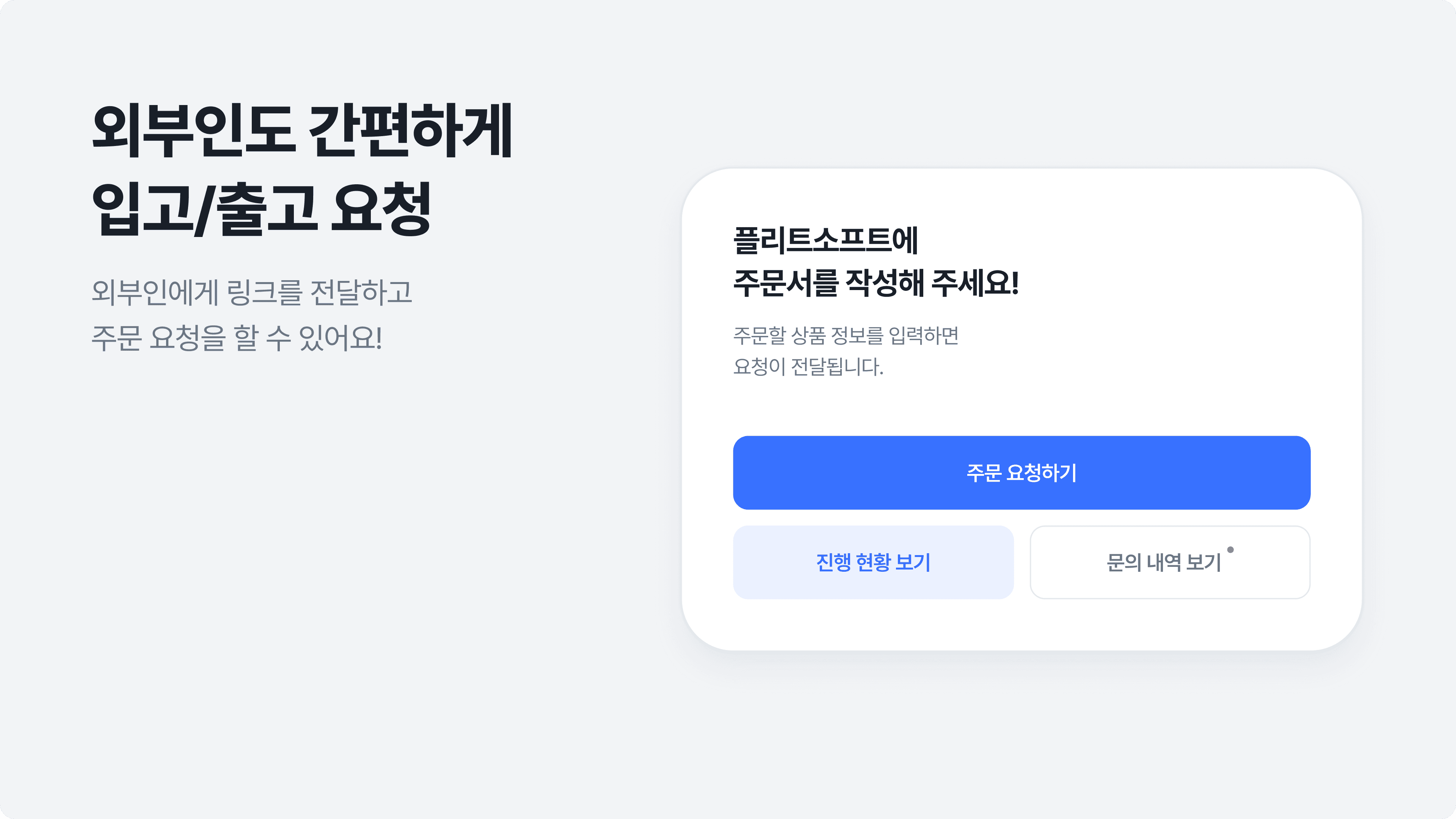 링크를 통해 발주나 출고 요청을 할 수 있어요.