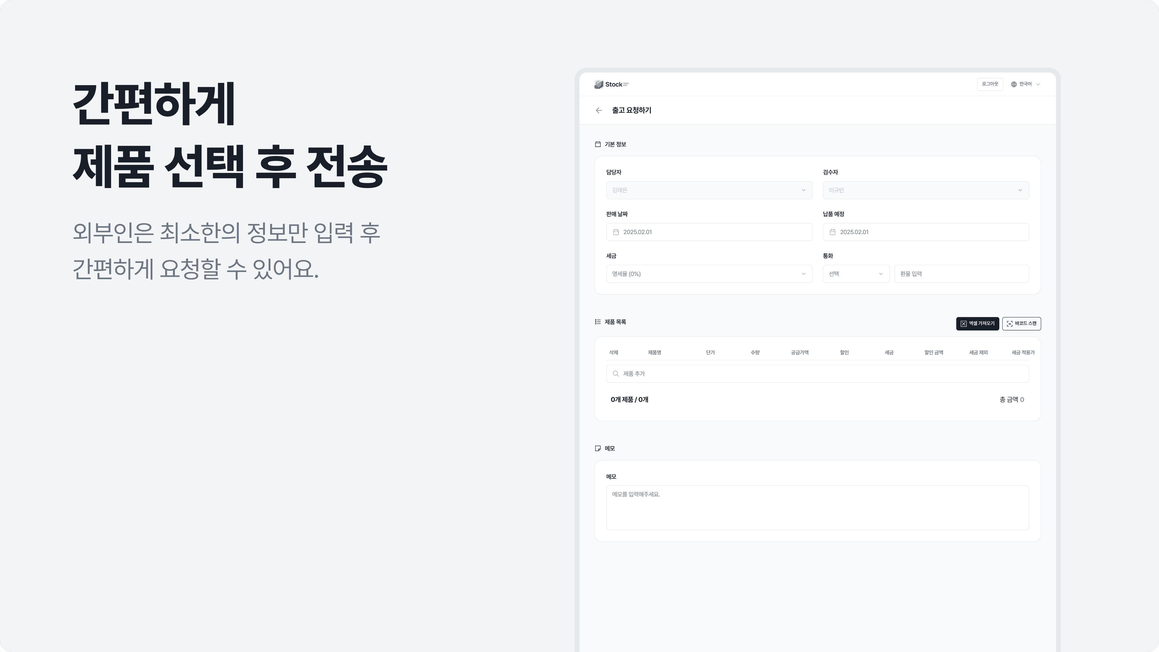 등록이 완료되면 외부인은 다시 발주나 출고 요청을 이어서 진행하면 끝!