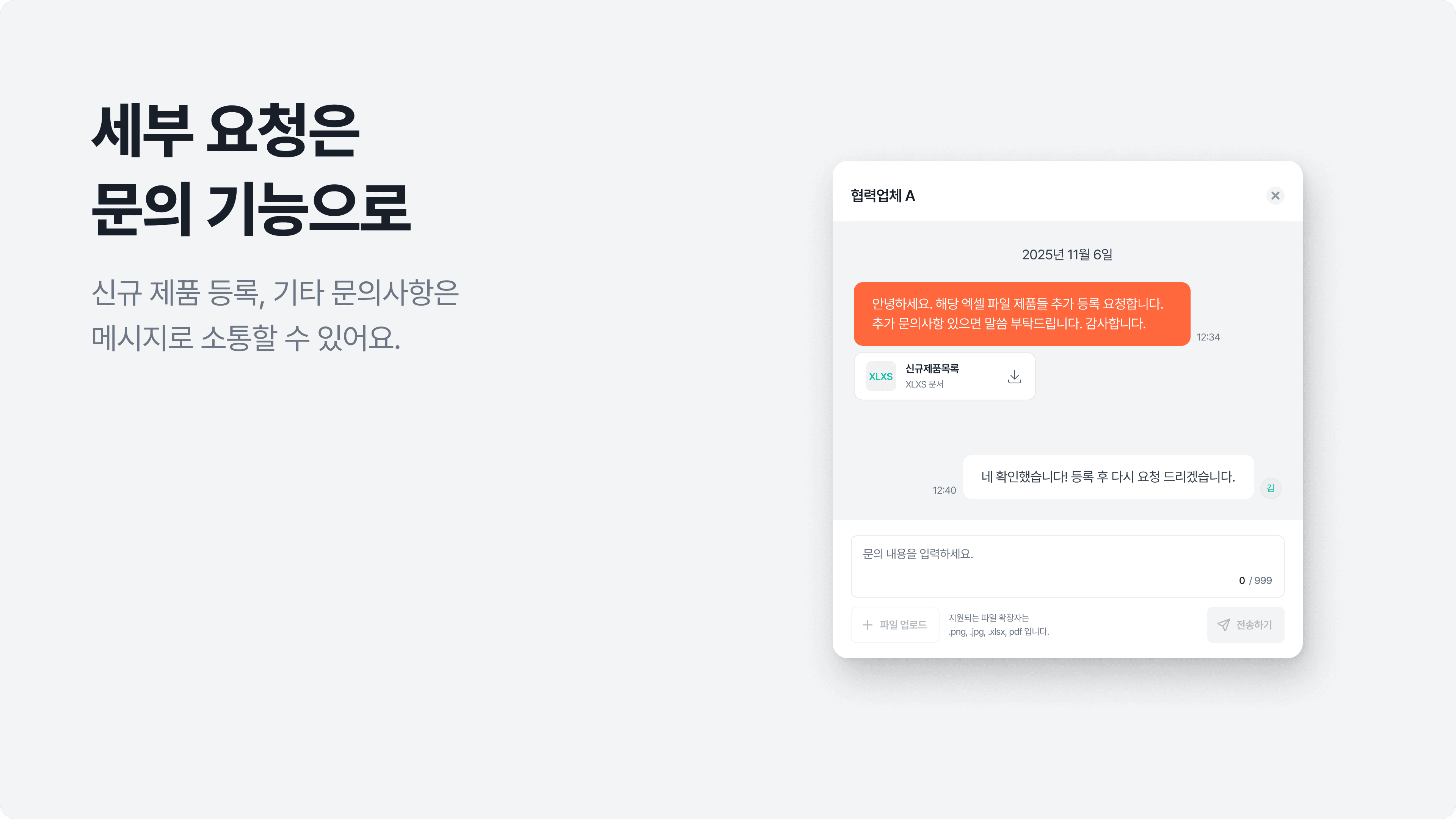 복잡한 절차 없이, 거래처나 외부 협력사가 바로 요청을 남길 수 있어서