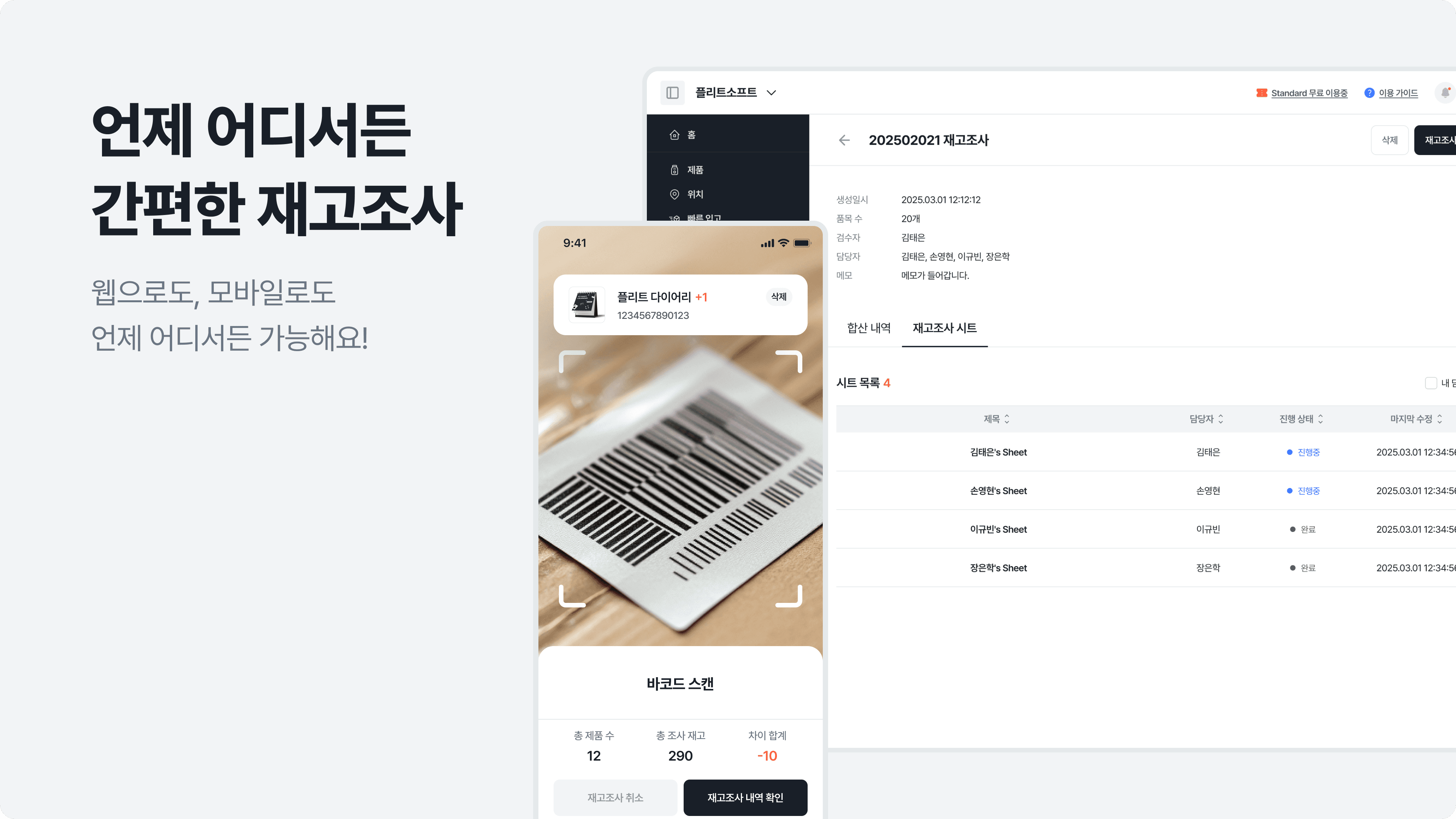모바일에서 바로 재고조사를 진행할 수 있어요.