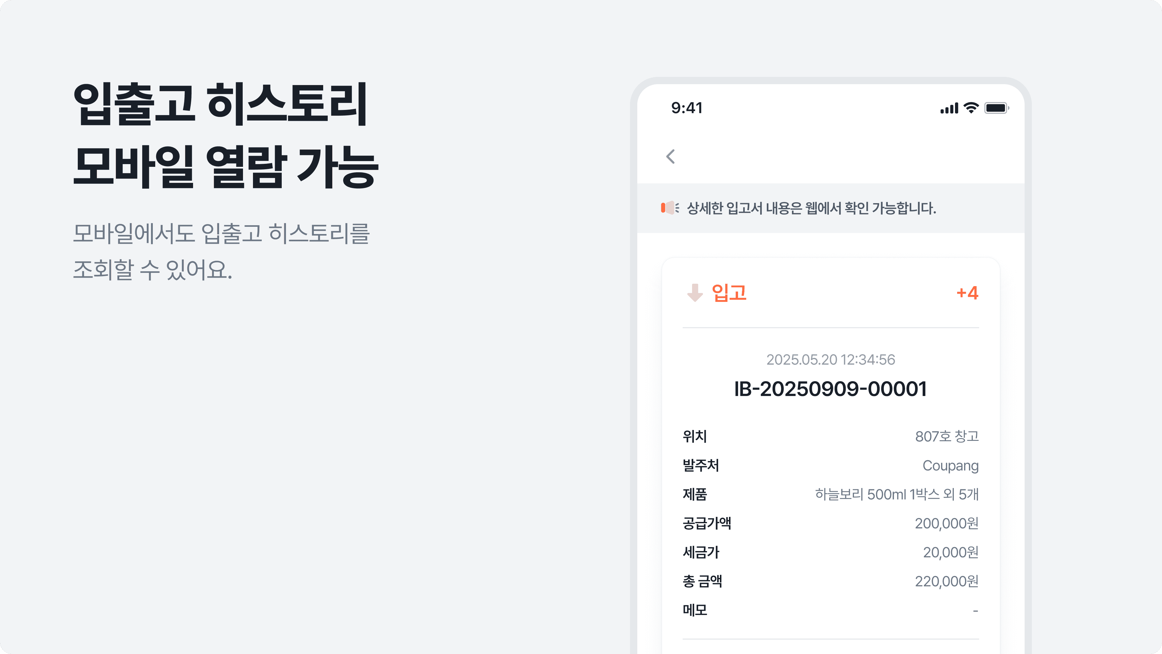 오늘부터 현장에서 더 빠르고 간편한 재고관리를 경험해보세요!