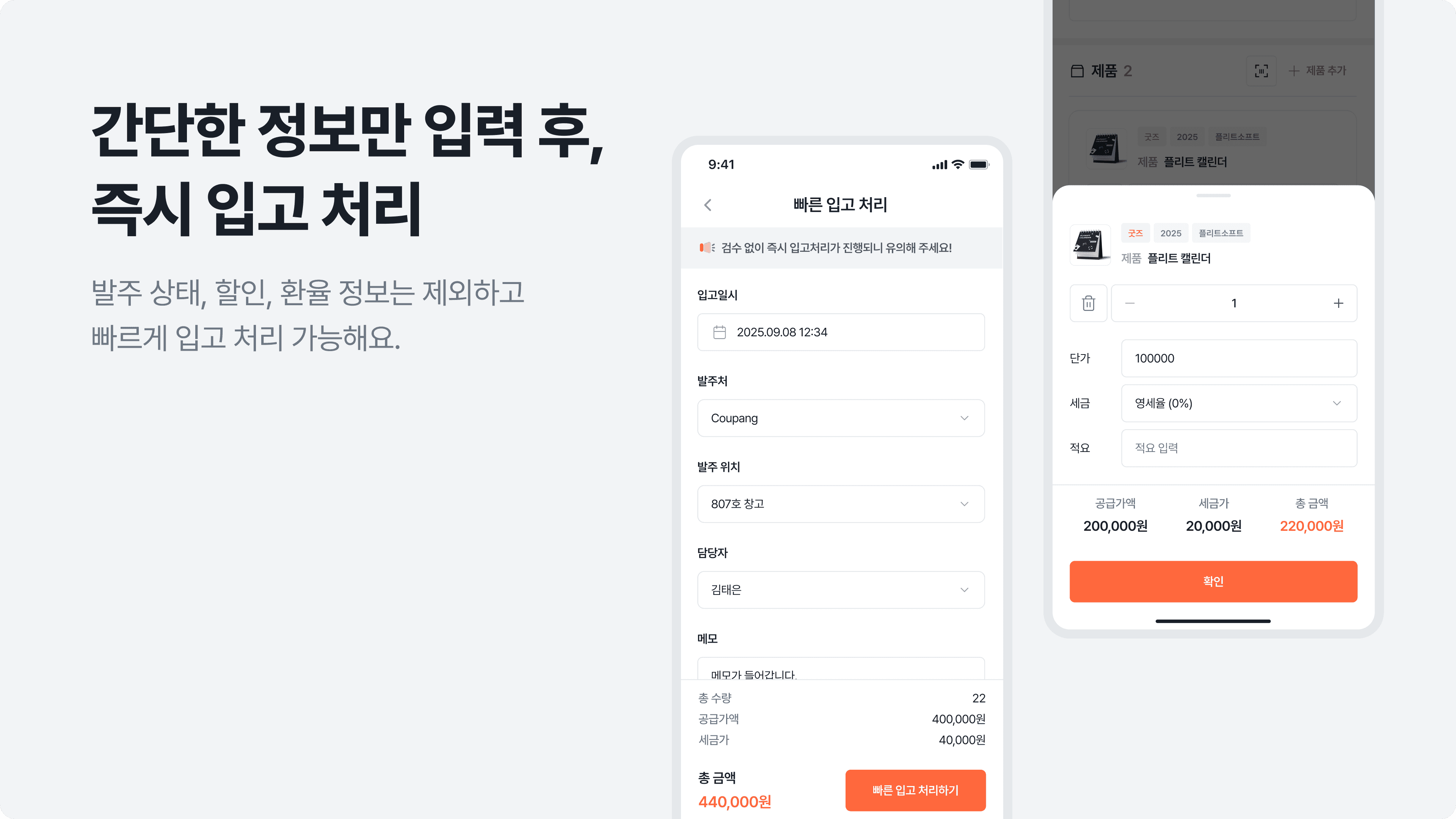 ⏱️ “발주 단계를 거치지 않고, 바로 입출고 완료!”